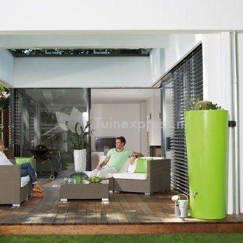 De design regenton is dus voorzien van twee functies. Hij vangt het regenwater op en dient als plantenbak. U wilt natuurlijk niet dat er potgrond in uw regenwater komt, daarom is de plantenbak voorzien van een viltlaag. De viltlaag zorgt ervoor dat het overtollige water van de planten gefilterd de regenton in gaat. De geïntegreerde plantenbak kunt u er eenvoudig uit halen zodat u gemakkelijker kunt planten en schoonmaken. Met de regenton kunt u op een kleine ruimte wel 350 liter hemelwater opslaan waardoor u altijd beschikt over voldoende én gratis regenwater. Verspil geen kostbaar drinkwater meer en geef uw planten gezond, kalkvrij water met deze design regenton! De regenton is gemaakt van kunststof in een vrolijke kleur groen. De regenton is ook verkrijgbaar in de trendy kleuren geel, rood, paars en blauw. De regenton wordt geleverd inclusief chromen design kraan.